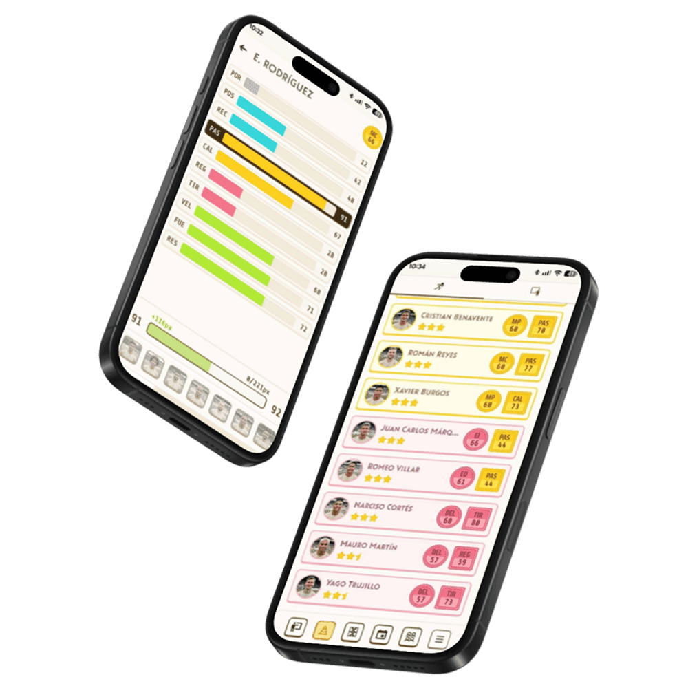 Podras elegir que estadísticas mejorar del jugador. Haz evolucionar a tu equipo a tu gusto!